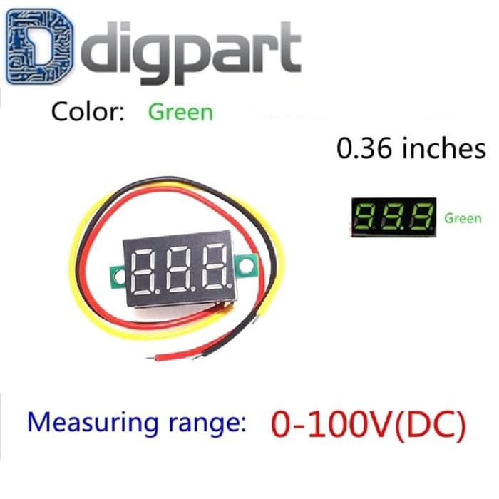 Voltmeter Mini Digital 0,36 Inch warna HIJAUVoltmeter kecil, hanya 0,36 inci, kisaran DC DC0-100V, 2 dan 3-kawat produk generik, untuk mengganti voltmeter rutin, desain terbaru, dapat bekerja langsung pada 5V, 9V, 12V, 24V dan sirkuit lainnya, tanpa peraturan. Dengan tiga kabel, akses mudah ke mobil / baterai mobil / motor car line, dengan fungsi perlindungan polaritas terbalik, garis terbalik tidak terbakar. Digunakan untuk memonitor tegangan baterai, memahami status tegangan baterai, juga dapat digunakan untuk aplikasi pengukuran tegangan produk lainnya.Fitur:1. stabilitas produk, akurasi pengukuran tinggi2. Ukuran standar keseluruhan, instalasi mudah3. Rangkaian perlindungan catu daya menggunakan kutubCATATAN: Rentang tegangan tiga-garis 0-100V, juga untuk penggunaan tegangan baris kedua dalam 30V, jika tidak, ada bahaya terbakar.Parameter teknik:Tegangan operasi: 4.0 ~ 30V (dengan fungsi perlindungan polaritas terbalik)Tegangan deteksi: 0,0 ~ 100VOperasi saat ini: 20mA Tampilan: 0.36 " LED, HIJAUDimensi: 30 11,7 9,2 mm (panjang * lebar * tinggi)Lubang pemasangan: 32,6 14mmTingkat pengukuran: 200mS / kaliAkurasi: 3 Kondisi kerja yang ekstremTegangan operasi rendah: + 4.0VTegangan kerja maksimum: + 30VSuhu kerja: -10 ~ + 65 CKelembaban: 10 hingga 80% (non-kondensasi)Tekanan kerja: 80 ~ 106 kPaPaparan sinar matahari: tidak ada paparan lan