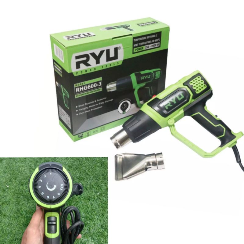 Heat gun ryu Type : RHG 600 - 3Spesifikasi:- Daya 250 - 2000 Watt- Pengatur suhu : 2 posisi- Piliham temperatur : 80 - 600 Derajat- Aliran Udara : 300 / 500 l/m-Over Heat protextion - More durable and powerful- Hanging hook for easy storage#heatgun #hotgun #heatgunryu #blowergun #b