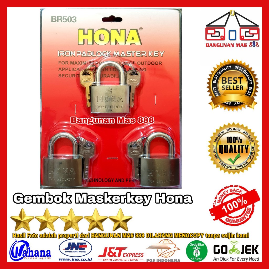 Harga Pabrik Perlengkapan di Kabupaten Bangkalan Gembok Master Key 60mm X 3 Pcs Hona - Gembok Pagar - Gembok Gudang - Gembok Set - Gembok Toko Murah dari Hona Kota Bekasi