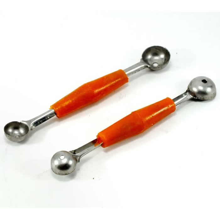 Kerokan Buah Bulat Cetakan cocktail Cetakan Buah Blewah Melon ScoopKerokan Buah Bulat ini Untuk membentuk buah menjadi bulat-bulat sehingga mempercantik tampilan Potongan buah pepaya, melon, blewah dll...Spesifikasi :- Bahan : aluminium- Panjang : 25 cm- Lebar : 2,5 cm- Pegangan dari plastik- terdapat 2 ukuran kerokan kecil dan