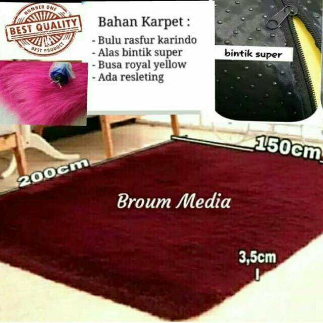Name: [lantai]karpet Bulu Rasfur 200 X 150 X Tebal 3.5 Cm Anti Slip Isi Busa Empuk Anti Rontok