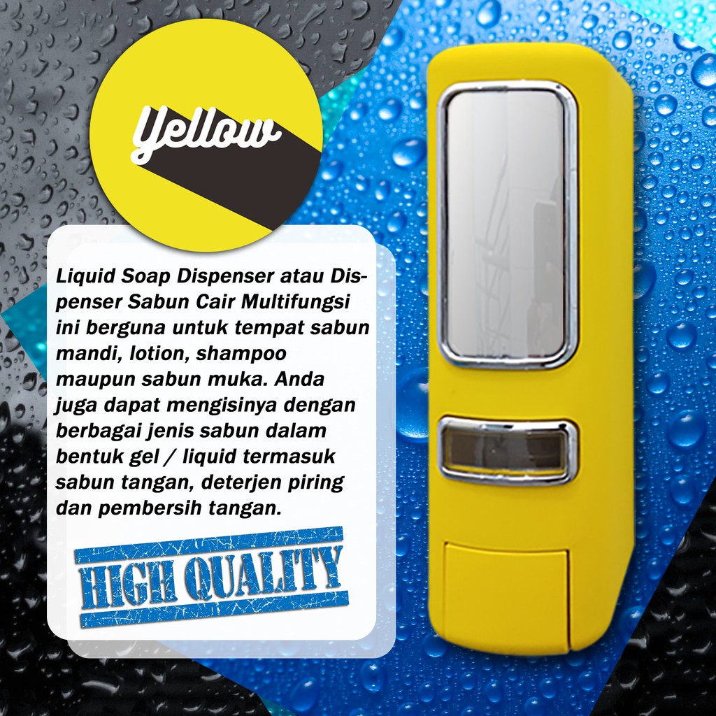Tempat sabun New ModelLiquid Soap Dispenser atau Dispenser Sabun Cair Multifungsi ini berguna untuk tempat sabun mandi, lotion, shampoo maupun sabun muka. Anda juga dapat mengisinya dengan berbagai jenis sabun dalam bentuk gel / liquid termasuk sabun tangan, deterjen piring dan pembersih tangan. Dengan desain yang unik dan hemat tempat sehingga membuat kamar mandi anda menjadi terlihat lebih rapi, elegan dan moderen. Anda juga dapat menjadikannya untuk mempercantik dekorasi kamar mandi anda. Sangat cocok untuk rumah pribadi, rumah sakit, hotel, rumah makan, salon, kantor dll. Selain itu, Dispenser sabun cair multifungsi ini memiliki kunci yang dapat mengunci sabun supaya tidak dapat digunakan orang yang tidak berkepentingan. Cara pemasangan mudah dan praktis, sudah tersedia Kunci dan Paku Bor yang kuat, anda cukup membuat lubang untuk mengantung dispenser.Keunggulan Produk:Menggunakan Sistem Per Lebih Awet dan tahan lamaMudah saat menggunakan tidak perlu dengan tenagaBahan dari plastik ABS berkualitas yang kuat dan kokoh sehingga lebih awet dan tahan lama.Pengisian mudah dan praktis.Desain unik, elegan dan hemat tempat.warna lebih bervarian dan eleganBisa dikunci supaya tidak dapat digunakan orang yang tidak berkepentingan.Mempercantik dekorasi kamar mandi anda sehingga terlihat lebih rapih dan elegan seperti hotel berbintang.Cara Pasang dan penggunaan :Buat lubang pada dinding untuk menggantung dispenser (Paku sudah disediakan).Untuk mengisi ulang sabun, anda cukup membuka pada bagian atas dispenser lalu isikan sabun.Untuk menggunakan anda hanya perlu memencet tombol.Untuk mengunci sabun cukup dengan mencolokan kunci pada lobang kunci yang ada pada bagian atas dispenser lalu tekan.MOHON MAAF, SEBELUM KIRIM KITA PASTIKAN CEK KONDISI BARANG DALAM KEADAAN BAIK, JADI TIDAK BISA RETUR/KOMPLAIN BARANG RUSAK/PECAH/RETAK. MEMBELI BERARTI SETUJU DENGAN PERATURAN INI. KERUSAKAN DALAM PENGIRIMAN BUKAN TANGGUNG JAWAB KITA. KEMASAN SUDAH MENDAPATKAN KARDUS DAN BUBBLE WRAP.SAAT PENERIMAAN PAKET HARAP CEK KONDISI BARANG DIDEPAN KURIR LANGSUNG SEBELUM TANDA TANGAN PENERIMAAN BARANG.TERIMAKASIH ATAS PERHATIAN DAN KERJASAM