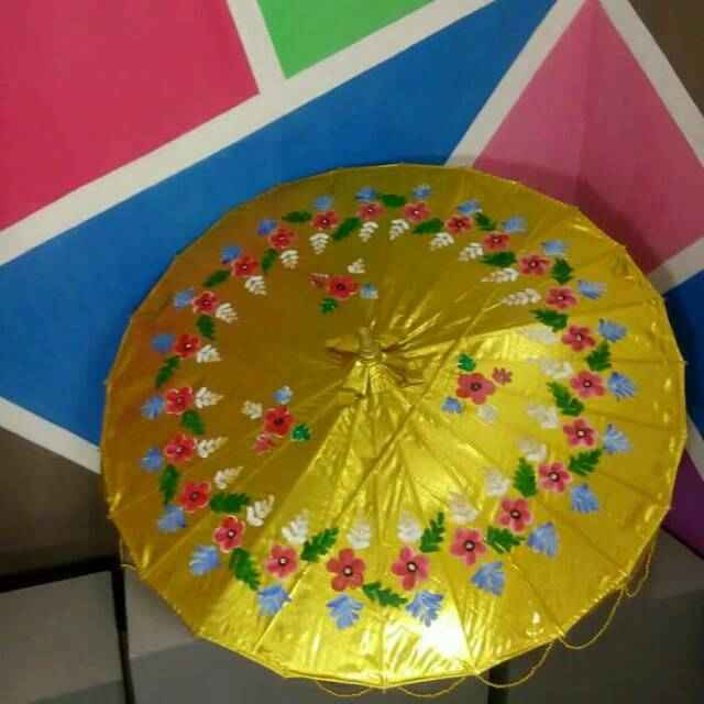 Bahan : kain lame emas / perak , kain satin, kain organdhi, kertasDiameter : 120 cmPanjang gagang : 180 cm (disam