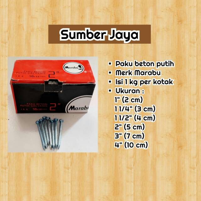Flash Sale Perlengkapan di Kota Pasuruan Paku Beton Marabu Full Sekotak 1 Kg dari Sumber Jaya Bangunan Kota Bekasi