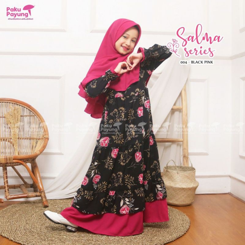 DESKRIPSI PRODAK• NAMA PRODUK: NEW! Salma Series• KATEGORI PRODUK: Gamis Anak & Remaja• BAHAN GAMIS: Wolpeach• BAHAN JILBAB: Wolpeach• FITUR: variasi ruffle dibagian bawah dengan kombinasi yang senada dengan khimar, terdapat tali yang bisa diikat ke belakangan• Anak (M, L, XL) , Remaja (1, 2, 3)• PILIHAN WARNA:1) Latte Blue2) Lilac3) Grey Salmon4) Black PinkDETAIL SIZE, UMUR, DAN HARGA SET ANAK:• M | PB 80 | LD 72 | 4Y-5Y | Rp131.000• L | PB 90 | LD 74 | 6Y-7Y | Rp138.000• XL | PB 100 | LD 78 | 7Y-8Y | Rp151.000DETAIL SIZE, UMUR, DAN HARGA GAMIS REMAJA:• 1 | PB 105 | LD 88 | 8Y-9Y | Rp161.000• 2 | PB 112 | LD 92 | 10Y-11Y | Rp171.000• 3 | PB 120 | LD 96 | 12Y-13Y | Rp18