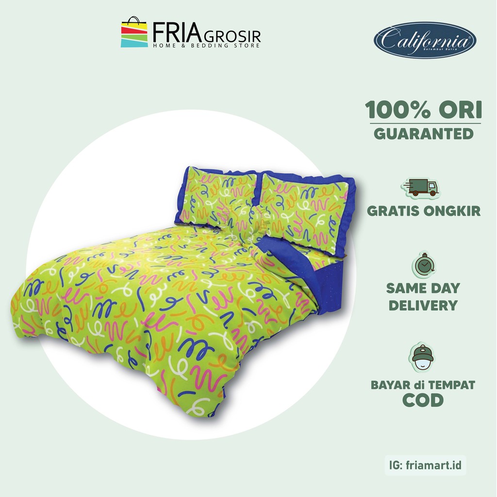 Promo Perlengkapan di Kota Surabaya California - Sprei 160x200 Queen 2 Sarung Bantal Guling Tidur Set Motif Minimalis Murah Friamart dari CALIFORNIA Kota Surabaya